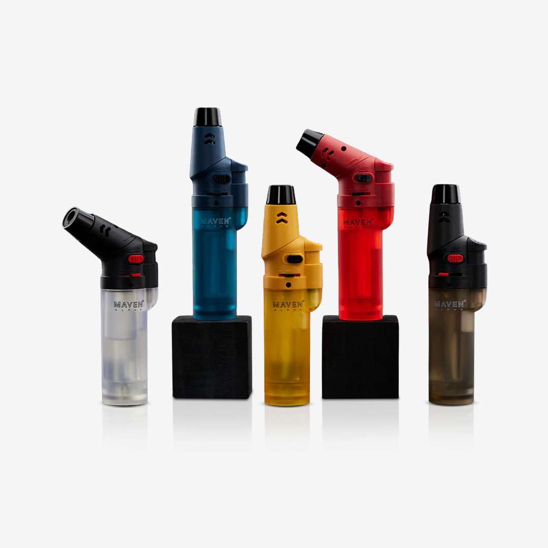 The Alpha+ Transparent Collection – 5 Pack is engineered for ultimate flame control and everyday reliability. Featuring a unique adjustable 8-position head, users can choose between a 45° or 90° angle for optimal lighting precision. Whether for dabbing, cigars, candles, or everyday use, these refillable butane torch lighters deliver consistent performance with safety and style.
