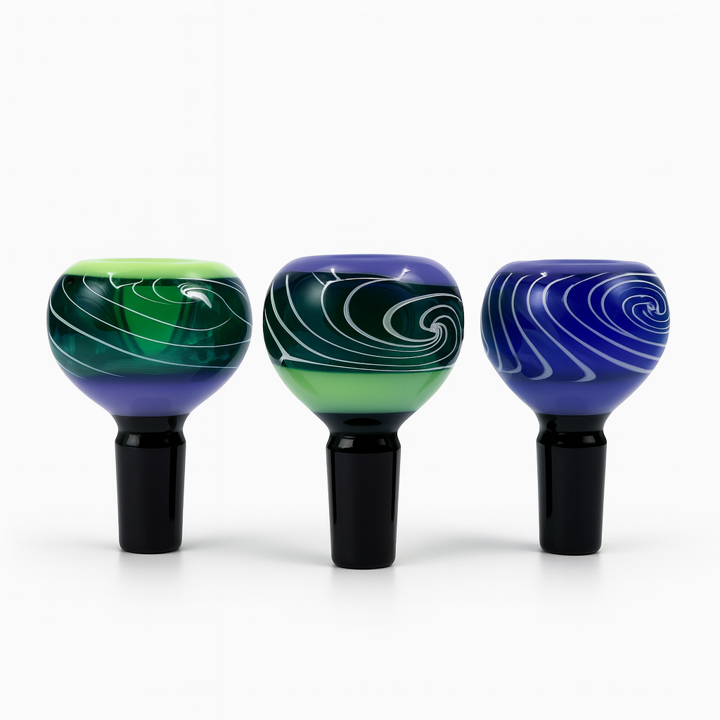 The Swirl Globe Glass Bowl offers a sleek rounded design with eye-catching swirl accents that bring motion and style to every session. Made from durable borosilicate glass, this bowl combines function with artistry, featuring a globe-like shape and vivid color blends that stand out in any collection.