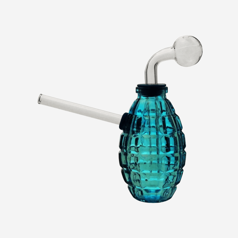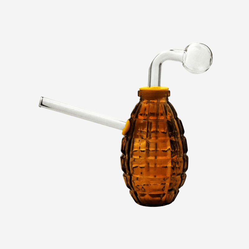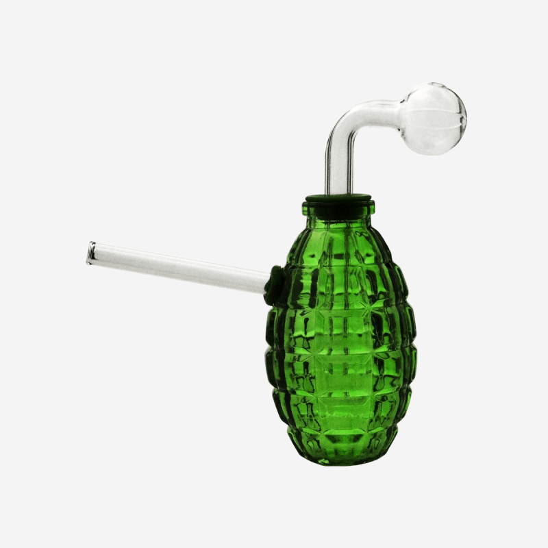 The Grenade Oil Burner is a distinctive and functional smoking accessory designed for concentrate enthusiasts. Shaped like a grenade, this oil burner combines playful aesthetics with practical functionality. Made from high-quality borosilicate glass, it ensures durability and heat resistance, making it ideal for regular use. The burner features a 14mm female joint, allowing it to fit seamlessly with a variety of water pipes, enhancing the versatility of your smoking setup. Its unique design not only serves as a conversation starter but also optimizes airflow for smooth and flavorful hits.