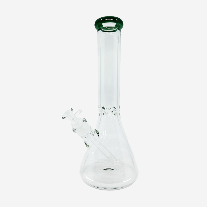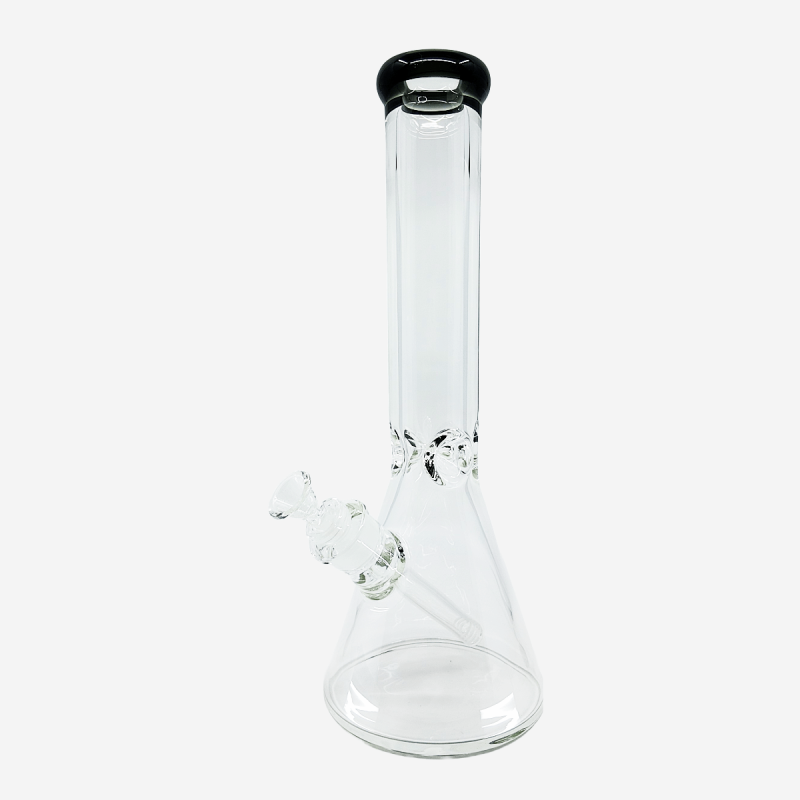 This 14 Inch Clear Beaker Bong features a Shadow Black Color Lip, 18mm – 14mm Multi Slit Down stem, and a 14mm Male Flower Bowl made of rugged 100% Borosilicate Glass. An Ice Pinch enables an additional layer of cooling for an enjoyable, chill hit. It is suitable for both indoor and outdoor usage.