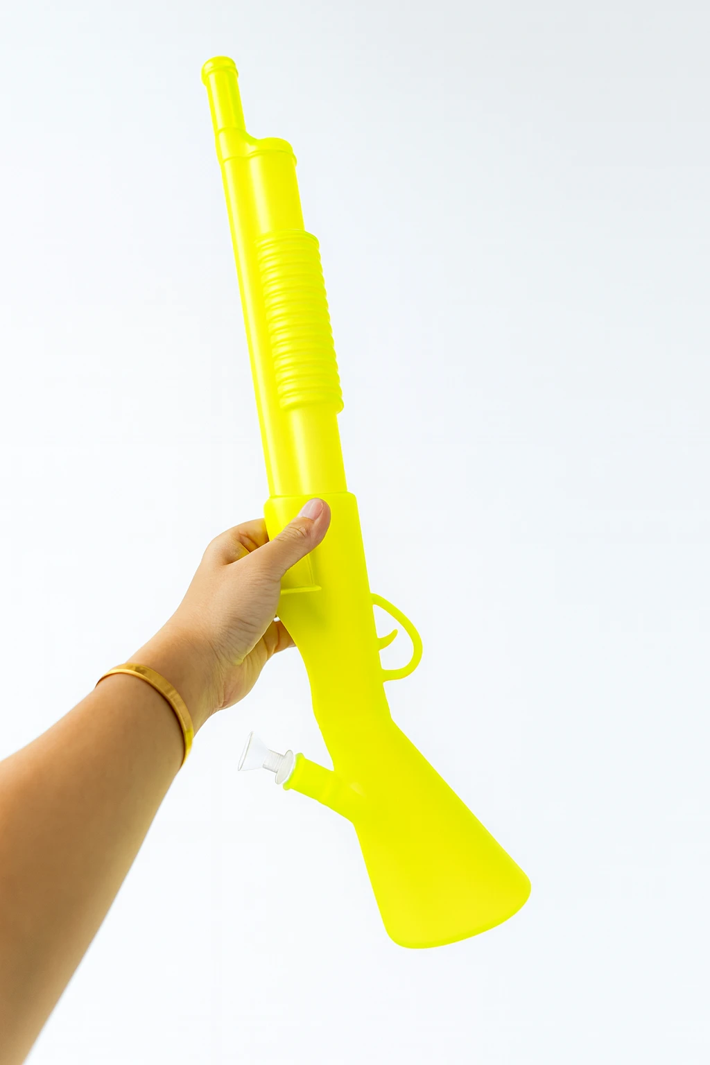 Lock, load, and light up with this bold **Shotgun-Shaped Glass Water Pipe**. Designed for collectors and smokers who like to make a statement, this oversized 24.5-inch piece delivers both style and smooth function.