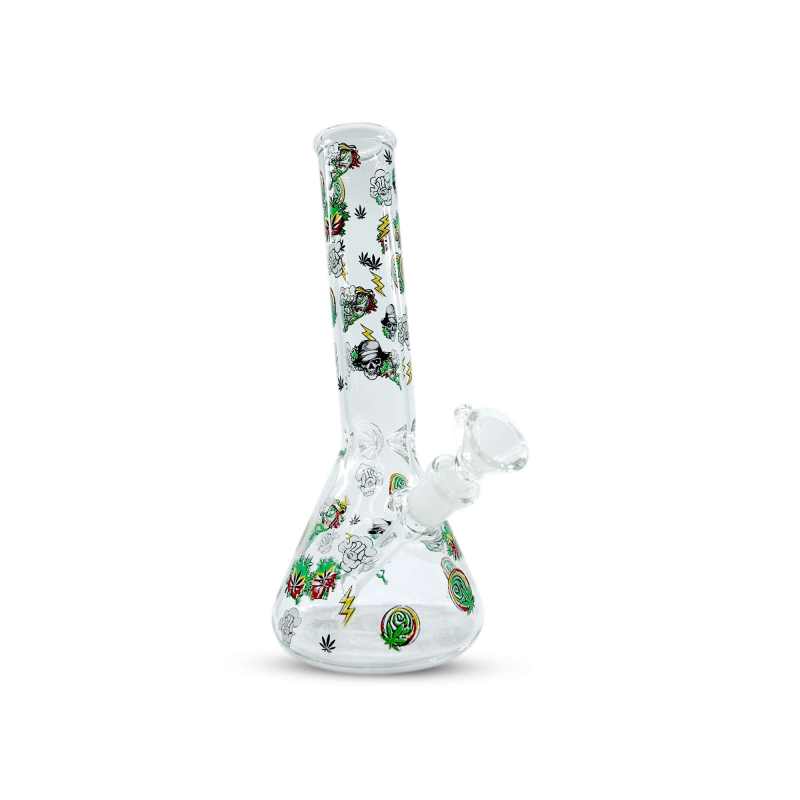 Add some personality to your collection with the 8-inch Character Print Glass Beaker. Made from durable borosilicate glass, this water pipe showcases fun and bold character-inspired artwork that makes it a standout piece. The beaker base ensures stability and smoother, filtered hits, perfect for daily use or display.