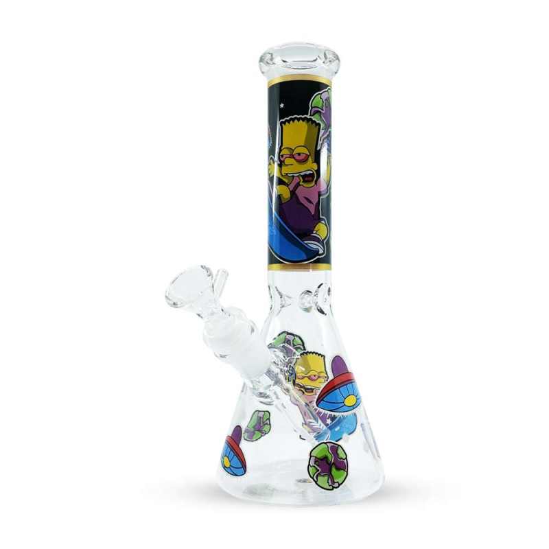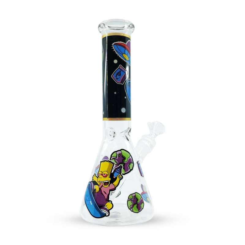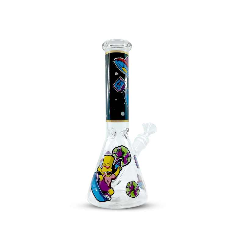 Bring fun and personality to your sessions with the 10-inch Bart Glass Beaker. Crafted from durable borosilicate glass, this water pipe features bold cartoon-inspired artwork of Bart in vibrant colors, making it a standout addition to any collection. The classic beaker base provides stability and smoother, filtered hits every time.