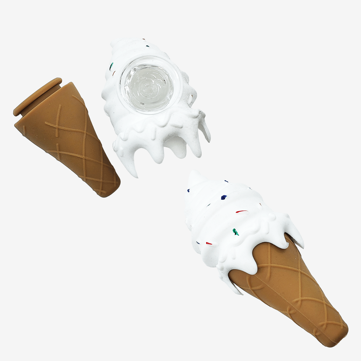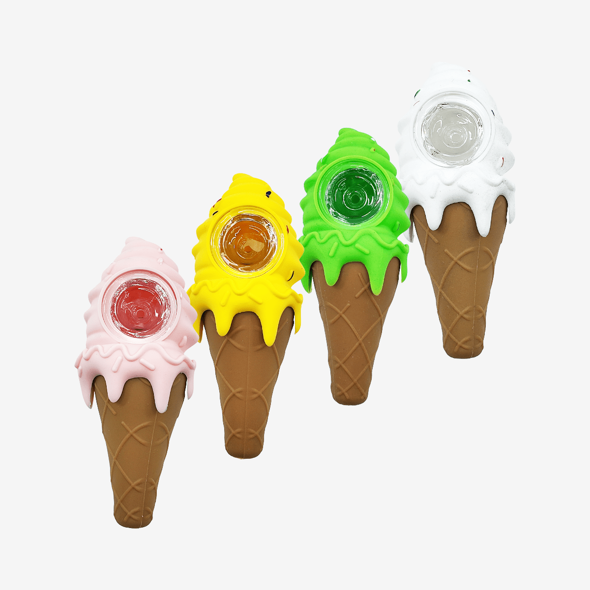 Introducing the Silicone Ice Cream Cone Pipe, a whimsical and functional smoking accessory that brings a playful twist to your smoking experience. This unique handpipe is designed to resemble a classic ice cream cone, making it a fun addition to any collection.Enjoy a delightful smoking experience with the Silicone Ice Cream Cone Pipe. Its fun design, durable materials, and practical features make it an excellent choice for both casual smokers and collectors alike. Whether at home or on the go, this pipe is sure to be a conversation starter and a favorite in your smoking repertoire.
