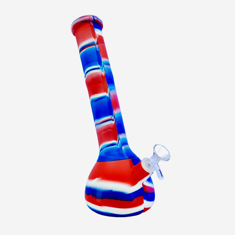 This water pipe comes in multicolor inclusive of silicone downstem and glass bowl.