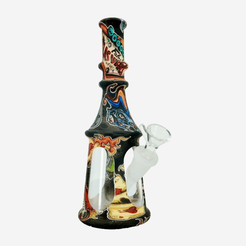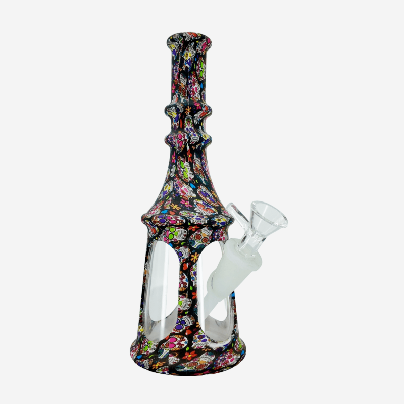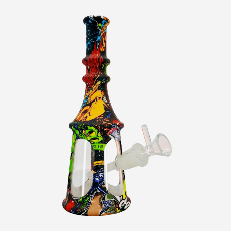 The Glass Base Silicone Waterpipe is an innovative and versatile smoking accessory designed for both durability and portability. Standing at 8 inches tall, this waterpipe features a sturdy glass base that provides stability and a clear view of the water level, while the silicone body offers flexibility and resistance to breakage. The combination of a silicone downstem and a glass bowl ensures a clean smoking experience, allowing users to enjoy their favorite concentrates with ease. With its printed design, this waterpipe not only performs well but also adds a touch of style to any collection.