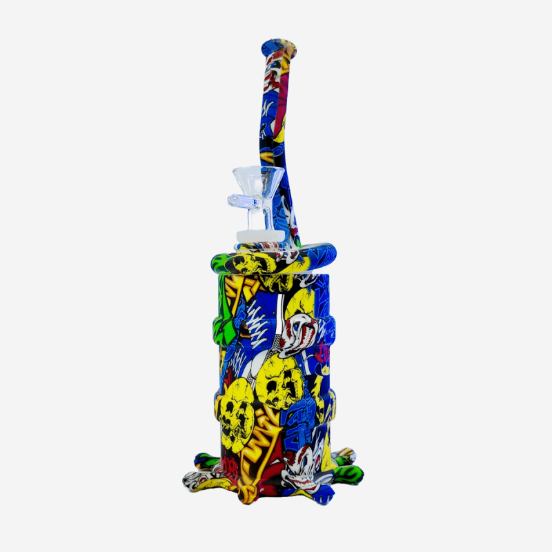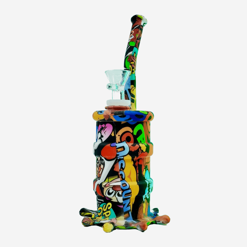 The Printed Barrel Silicone Waterpipe is a compact and versatile smoking accessory designed for convenience and portability. Standing at just 4 inches tall, this waterpipe features a unique barrel-shaped design with eye-catching printed graphics. Constructed from high-quality, food-grade silicone, it offers exceptional durability and resistance to breakage, making it ideal for both home use and on-the-go sessions. The waterpipe comes complete with an attached silicone downstem and a 14mm glass bowl, ensuring a smooth and enjoyable smoking experience right out of the box