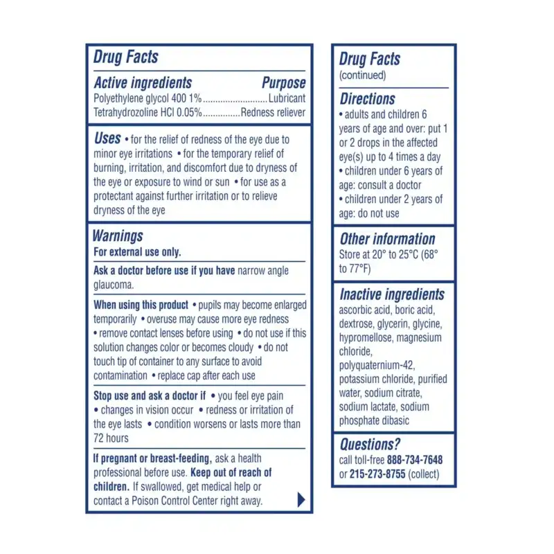 ⫸ Features: Fast-acting (relief in 30 seconds), lubricates and refreshes eyes